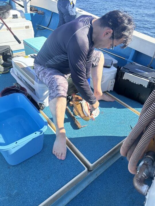 ただし、私は今回タクシーで来たので特別にクーラーボックスを船に乗せさせてもらった。
