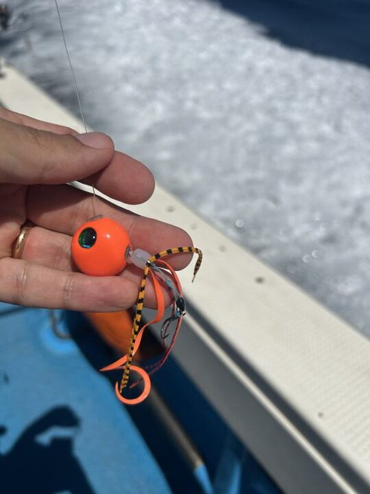 初めはオレンジのタングステンの80gを使っていたのだけど釣りづらい状況であったのでオレンジのタングステンの100gを使うことにした。基本的に終始100gのタイラバで釣りをすることにした。