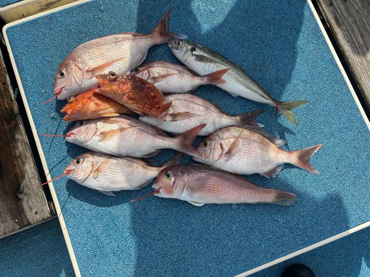 結局、マダイ6枚にアマダイ1枚、カサゴ2枚にアジなど、そこそこの釣果に恵まれてくれた。